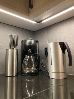 Wel moet me even van het hart dat het echt veel moeite kost om de afdekkap er in te drukken. Zelfs op de geadviseerde manier kost het echt veel kracht. En ook het begin is lastig. Dat het profiel ondersteboven onder een keukenkastje gemonteerd is, maakt het niet gemakkelijker. Maar ik heb in het verleden gemakkelijkere profielen gebruikt.